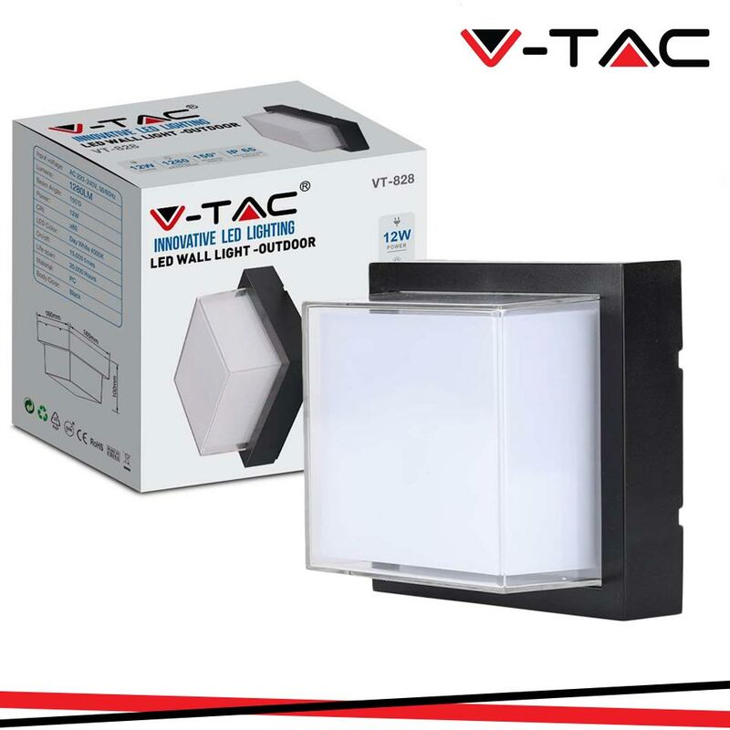 12W LED Lampada da parete Black Quadrata 4000K SKU: 218544: VT: VT-828 Specifiche tecniche Informazione generale Tipo LED SMD Vitamedia 20,000 ore Dati elettrici Potenza 12W Tensione AC:220-240V Frequenza 50/60Hz Dati tecnici luce Fascio Luminoso° 150° Colore della luce Bianco naturale Temperatura di colore 4000K Flusso luminoso (lm) 1280 lm Indice di resa cromatica Ra >80 Dettagli corpo Colore Nero Materiale PC Funzionalità Valutazione del IP IP65 Sensor No Tempo innesco 100% 0.001 secondo Stabilità del colore Numero cicli accensione / spegnimento >15000 Condizioni di lavoro Non adatto per luso in condizioni estreme. Condizioni normali di lavoro tra -20 ° + 45 ° Dimensione Dimensioni 160x160x100 mm Dati del prodotto Numero dordine 218544 Numero di prodotto VT-828 Pezzi per confezione 1 Peso 0,61 Volume 0,00366 Pezzi per scatola 20 Codice EAN 3800157678865 Certificati e norme Classe di efficienza energetica F Certificazione CE, EMC, ROHS Aggiuntivo Data di rilascio 06.09.2022 Marchio