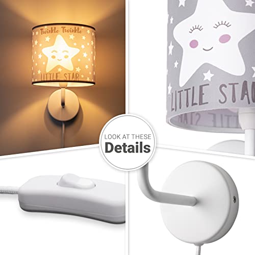 Paco Home Lampada Da Parete Cameretta Dei Bambini Paralume In Tessuto Rotonda Luna Stelle E14