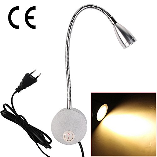 LED Lampada da Parete Collo di Cigno Luce di Lettura, Clover Star 3W Luminoso Notte Lampada di IlluminAzione con Interruttore per Camera da Letto Soggiorno Lampada Applique Lampada da Comodino Prenota Lights (Argento bianco caldo)