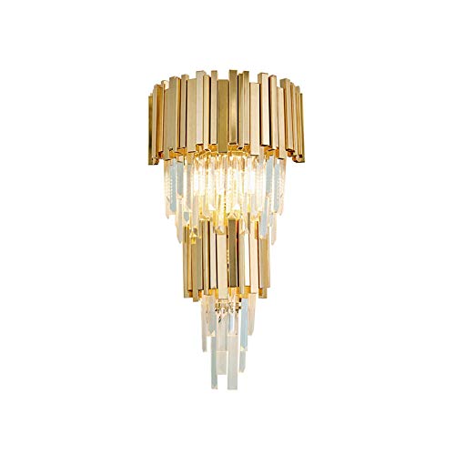 Lampada da Parete di Cristallo, Ferro Placcatura Moderna Lampada da Parete Industriale Trasparente a Parete Illuminazione E14 * 2 per Soggiorno Camera Bagno Senza Sorgente Luminosa (Oro)