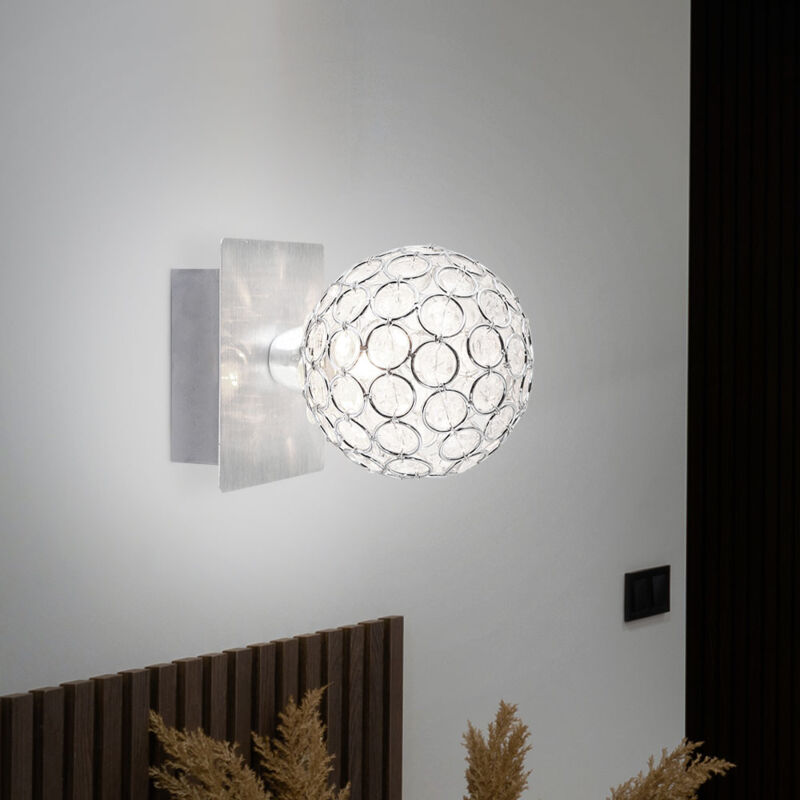 Descrizione Elegante lampada da parete con bellissimi cristalli. Questo faretto da parete brilla di un look fresco grazie a un mix di cristalli e alluminio. La lampada può essere utilizzata perfettamente per illuminare e decorare un'ampia varietà di stanze e angoli. Grazie alla sua forma emette una luce meravigliosa e valorizza visivamente ogni stanza. Nella consegna è inclusa una lampadina LED. Lampada dettagli • Tipo di luce: applique • Materiale: alluminio • Paralume: cristalli acrilici trasparenti • Accendere la base • Grado di protezione: IP20 • Diametro della pallina in cm: 10 • Lunghezza x larghezza x altezza in cm: 15x11x11 • Presa: 1x G9 • Lampadine incluse: sì • Potenza lampada: 1x 3,5 watt • Flusso luminoso: 1x 350 lumen • Colore della luce: bianco caldo • Voltaggio: 230 volt, 50Hz Dettagli lampadine • Tipo di lampadina: LED • Attacco: G9 • Flusso luminoso: 350 lm (lumen) • Consumo energetico: 4 kWh/1000h • Temperatura colore: 3000K (Kelvin) • Colore della luce: bianco