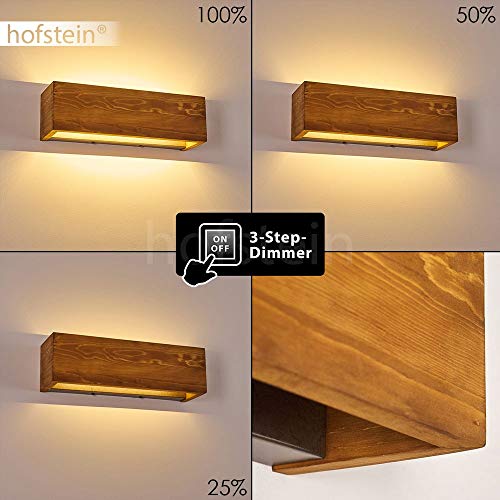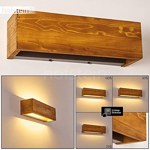 Lampada da parete LED Adak, lampada da parete dimmerabile in legno/metallo in marrone/grigio, 13,5 watt, 1800 lumen, 3000 K, lampada da parete interna allungata con effetto up&down sulla parete