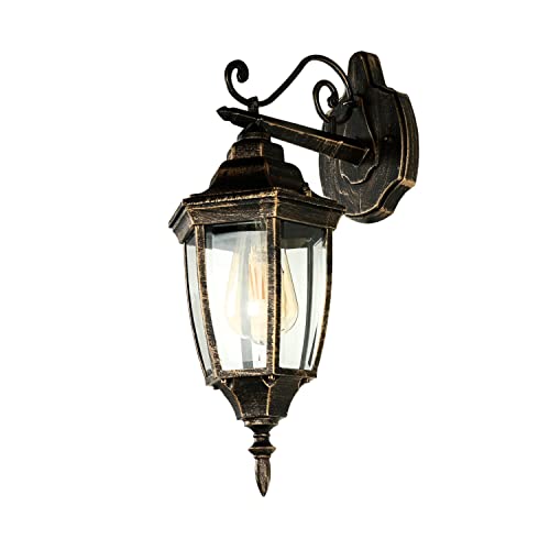 Lampada da parete esterna Toronto in stile vintage a forma di lanterna color oro anticato IP44 E27 ideale per balcone giardino terrazza