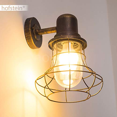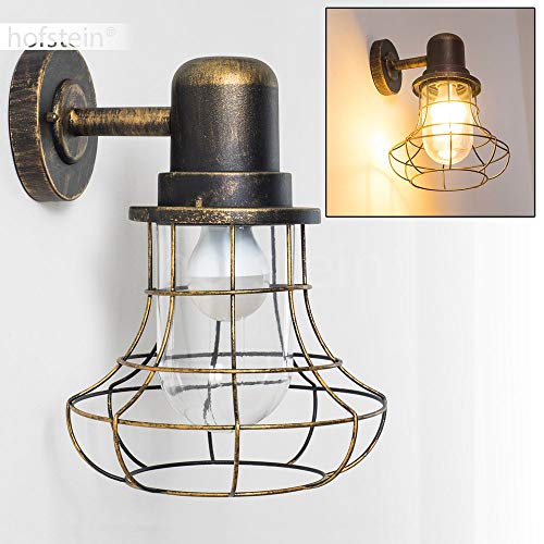 Lampada da parete per esterni Borkan, lampada verso il basso in stile antico in metallo/vetro in marrone/oro, 1 luce, E27, lampada da esterno retro/vintage per terrazza/cortile, IP44, senza lampadina