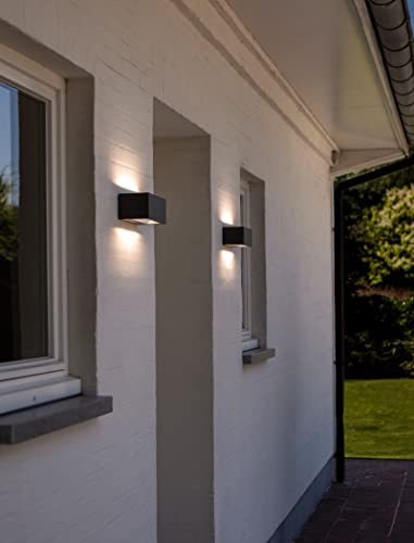 Lampada da parete per esterni Gemini, moderna lampada da parete in antracite, 10,5 Watt, 700 lumen, luce 3000 Kelvin, lampada da parete quadrata con effetto up&down