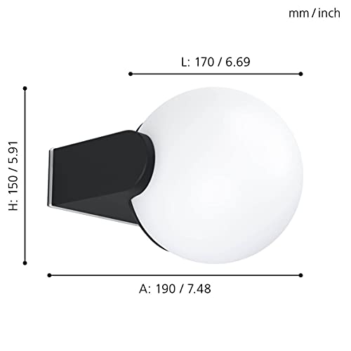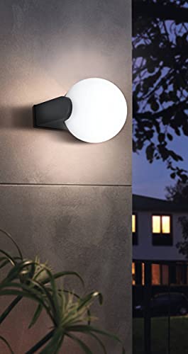 La lampada da parete esterna è realizzata in fusione di alluminio in nero e realizzato con una palla luminosa fatta di plastica in bianco