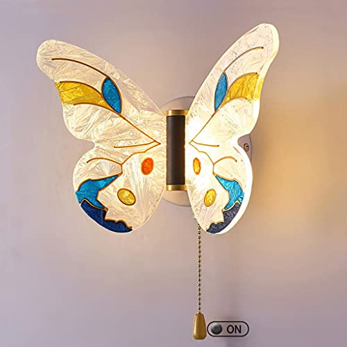 WJLL Lampada da Parete Farfalla Creativa, Lampada a muro LED Metallo Lampada da Comodino Moderna con Paralume in Acrilico 3 Temperature di Colore per Camerette Soggiorno Corridoio Scale,8W