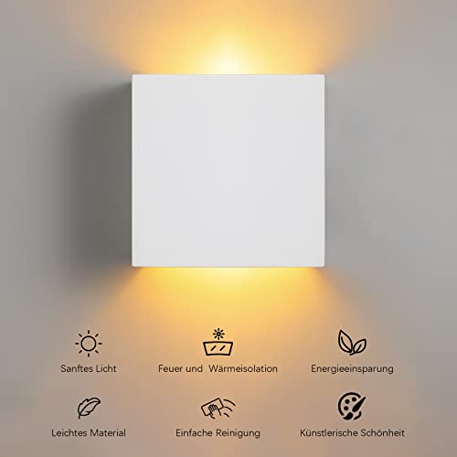 Lampada da parete in gesso 9W Lampada da parete a LED per interni Lampada in gesso bianco design moderno illuminazione quadrata Lampadine a LED G9, per soggiorno, studio, corridoio, vano scala