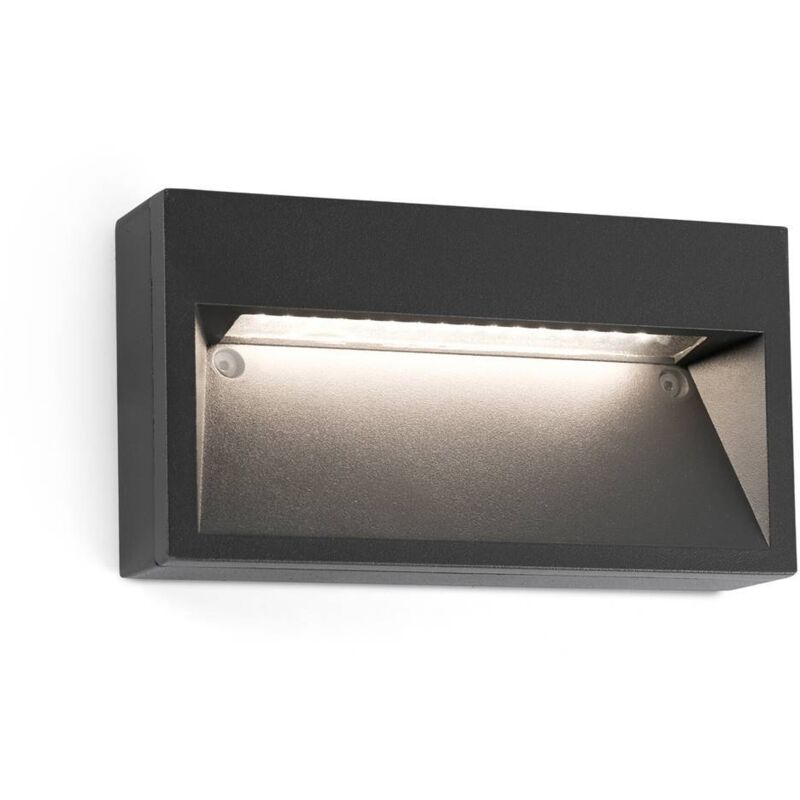 Aplique para exterior gris oscuro, modelo PATH de FARO. Se puede fijar en pared. La fuente de luz incluida es SMD LED 9W 3000K 390Lm. Fabricado en aluminio y acabado en gris oscuro. Dispone de una protección IP44