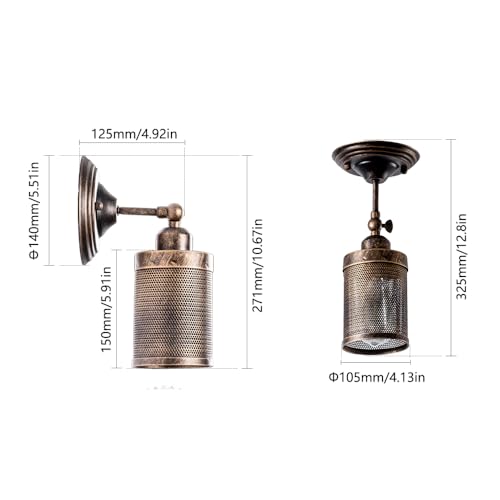 Lampada da parete Industriale 2 Pack, lampada da parete d'interni d'epoca a rete metallica Steampunk LULING Steampunk, zoccolo regolabile per garage Gate Gate Porch Hallway (NO Bulb)