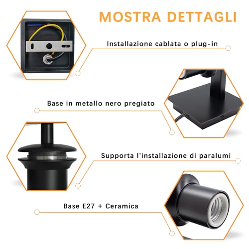 【Materiale】L'Applique da Parete Interno in Metallo Nero è realizzata in metallo di alta qualità e rifinita in lacca nera senza timore di ossidazione e sbiadimento. La lampada da parete ha una testa in ceramica per la massima protezione della lampadina, a differenza delle normali teste in plastica.