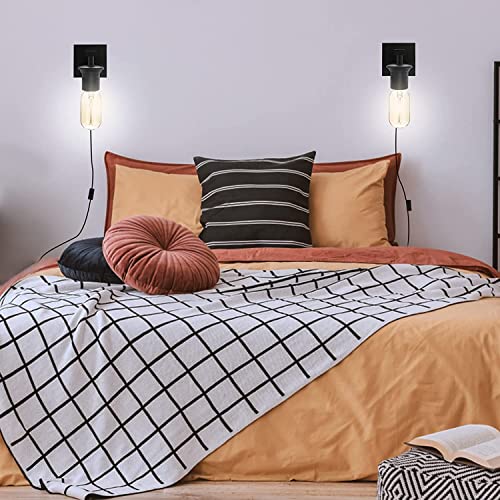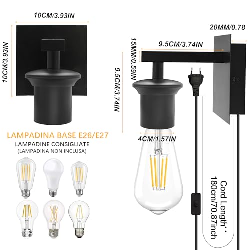 Lampada da Parete Interna Industriale, 2 Pezzi Applique da Parete Interno Vintage con Spina e Interruttore da 180cm,E27 Illuminazione Interni Lampada a Muro,Porta E27 in Ceramica,per Soggiorno