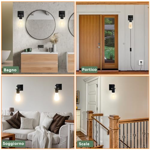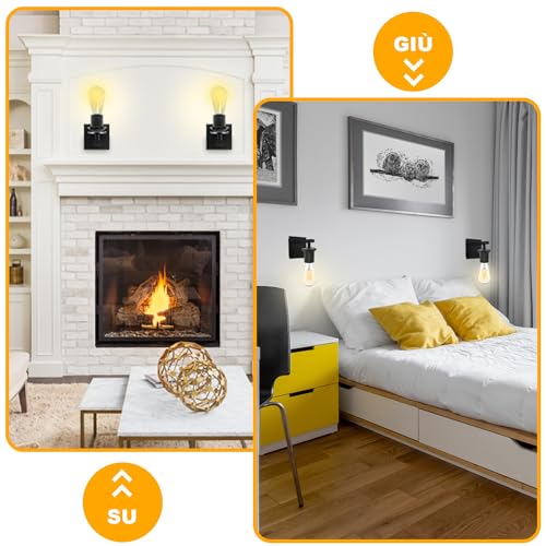【Base E26/E27】Lampade da Parete Vintage Industriale supporta qualsiasi lampadina con attacco E26/E27, può sopportare una potenza massima di 100W, range di tensione 110-250V, puoi migliorare l'aspetto del tuo comò cambiando la lampadina. (senza lampadina)