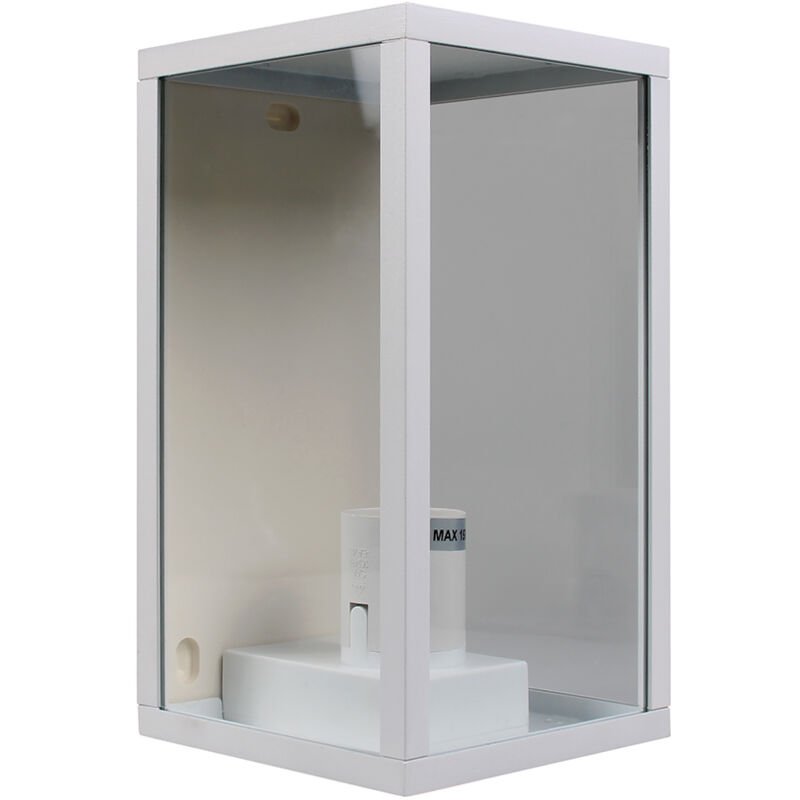 LAMPADA DA PARETE IP44 PER INTERNI ED ESTERNI IN ALLUMINIO BIANCO CON ATTACCO E27 - DESIGN ELEGANTE E MODERNO Scopri la nostra elegante lampada da parete, una soluzione di illuminazione perfetta tanto per gli interni quanto per gli esterni. Progettata con un attacco E27, questa lampada unisce funzionalità e stile, essendo realizzata con un corpo in alluminio bianco e una copertura in vetro che non solo ne esalta il design moderno ma offre anche una protezione efficace contro gli agenti atmosferici, grazie al suo grado di protezione IP44. La lampada, con dimensioni di 220x120x120 mm, è stata pensata per adattarsi armoniosamente a qualsiasi ambiente, dai corridoi interni agli spazi esterni come terrazze e balconi. La sua resistenza all'acqua la rende ideale per zone esposte a umidità o intemperie, assicurando una lunga durata e mantenendo il suo aspetto estetico nel tempo. Dotata di un attacco per lampadine E27, questa lampada permette di utilizzare sorgenti luminose fino a 15W. È