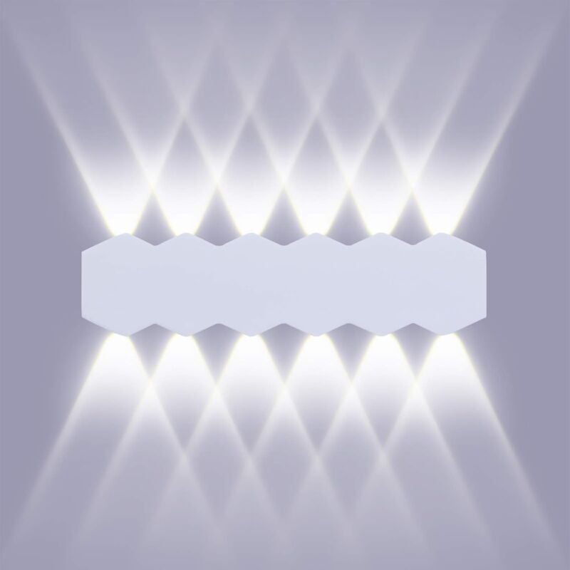 Stile: moderno. Questa lampada da parete è perfetta per i tuoi interni. 【Materiale in alluminio】 - Questa lampada da parete è realizzata in alluminio di alta qualità, elegante e luminoso, alluminio leggero, anticorrosivo, antiossidante, durevole e facile da pulire. 【Risparmio energetico】 - La nostra lampada da parete con illuminazione su e giù può proteggere i tuoi occhi, bianco freddo 6000K 1200LM, nessuna luce abbagliante, alta resa luminosa, nessun flash, 12W basso consumo energetico e protezione ambientale, risparmia denaro. 【Design elegante】 - L'applique ha una forma poligonale con pregevole fattura.lucida, più bella e generosa, non è solo perfetta per l'illuminazione ma perfetto anche per la decorazione, come: soggiorno, camera da letto, corridoio, scale, balcone, cucina, sala da pranzo