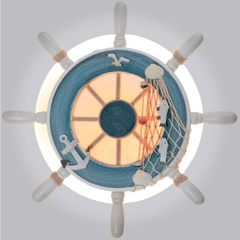 Lampada da parete in stile mediterraneo: questa lampada da parete di design adotta la forma del timone di una nave e la superficie è decorata con gabbiani e reti da pesca. È una lampada da parete dallo stile molto particolare e lascia un'impressione profonda nelle persone. Il materiale della striscia che trasmette la luce è acrilico di alta qualità e il materiale traslucido rende questa lampada da parete più bella. ? Design dell'illuminazione: questa lampada da parete per bambini ha anche realizzato disegni sul colore della luce.Abbiamo usato un cerchio di luci bianche fredde da 6000K all'esterno e un cerchio di luci bianche calde da 3000K all'interno dell'acrilico rotondo della lampada da parete per bambini. Questa lampada da parete ha l'effetto del bianco naturale 4000K in combinazione, ma ha un netto contrasto in senso visivo. ? Materiali di alta qualità: la sorgente luminosa della lampada da parete per interni adotta perline di lampada LED di alta qualità, la luce è stabile e