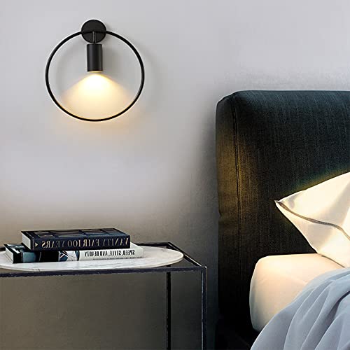 Lampada Da Parete Interno LED 7W Bianco Caldo Metallo Regolabile Applique Da Parete Moderno Creative Rotondo Lampada A Muro, Per Soggiorno Camera Da Letto Scale Corridoio Ristoranti, Nero