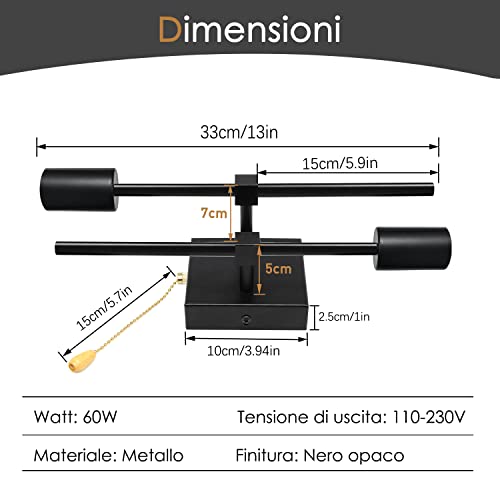 ☀【Materiale di Alta Qualità】Lampada da parete vintage con interruttore a trazione è realizzata in materiale metallico robusto. Lo strato esterno della 2 luci applique da parete interno nero adotta la tecnologia di placcatura, che non è facile da ossidare, sbiadire e arrugginire, è più durevole e la lampada da parete industriale della camera da letto retrò ha una lucentezza metallica. La applique bagno vintage rustica con interruttore a trazione rende la tua stanza più lussuosa e strutturata.
