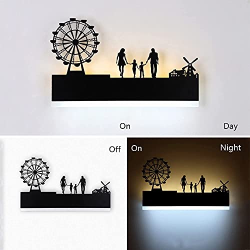 【Temperatura di colore confortevole】Questa lampada da parete è realizzata in ferro e acrilico. La parte visibile è incisa al laser con lastra di ferro. La parte posteriore utilizza una striscia luminosa a LED come fonte di luce. La striscia di luce verso l'alto utilizza una luce gialla calda 3000K e la striscia di luce verso il basso utilizza una luce bianca fredda 6500K, abbinata ad alcuni disegni di animali o personaggi, raffigura una scena di alba o tramonto.