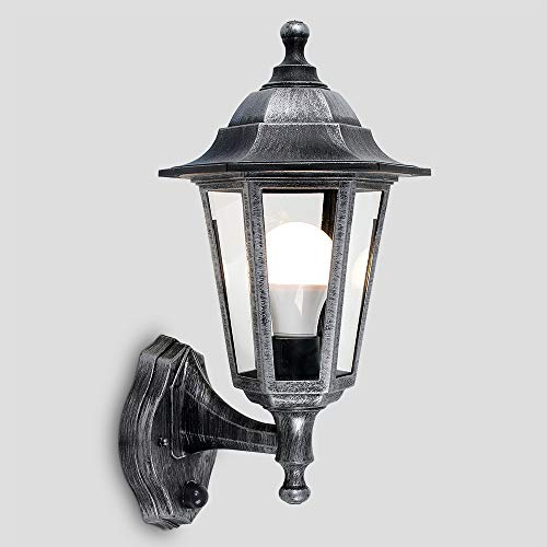 Lampada da parete a lanterna tradizionale in stile vittoriano da giardino di sicurezza IP44 - dotati di sensore di movimento PIR integrato. Black & Silver