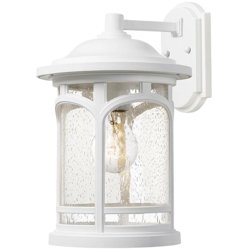 Lampada a muro Marlehead 1xe27 H: 34.2 L: 25.7 B: 22 IP44 Dimensioni in mm: Altezza: 342, larghezza: 220, profondità: 257, Peso in kg: 2700 Medium luminato incluso: No Tipo di lampada/versione: E27 Massimo Performance in watts: 60 Dimmbar: No Classe di protezione: IP44 Materiale da alloggio: composito, Imposta chiaramente il vetro Colore: bianco