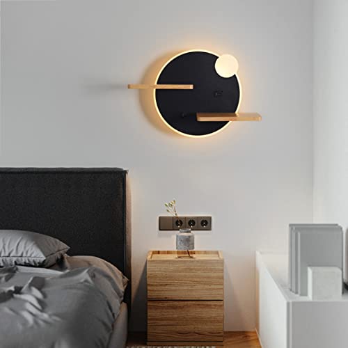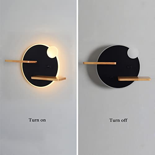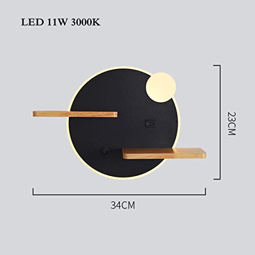 HKLY Lampada da parete a LED in Metallo con Interruttore,11W Applique da Parete Interno Moderno con Porta di Ricarica USB,Mensole in Legno, dell'hotel Camera da letto Luce Notturna 3000K (B2)