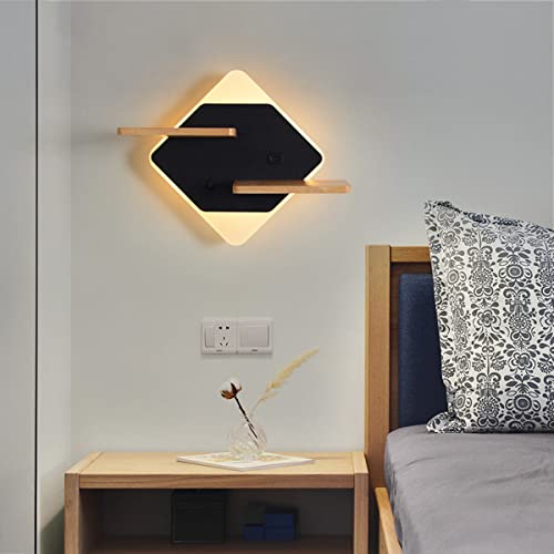 HKLY Lampada da parete a LED in Metallo con Interruttore,11W Applique da Parete Interno Moderno con Porta di Ricarica USB,Mensole in Legno, dell'hotel Camera da letto Luce Notturna 3000K (A2)