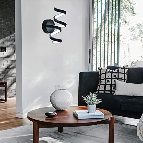 Lampada da Parete Moderna a LED a Spirale Nero opaco con Arredamento Applique da Parete in alluminio Acrilico per soggiorno,cucina,camera da letto,ufficio bianco freddo 6000K (B)