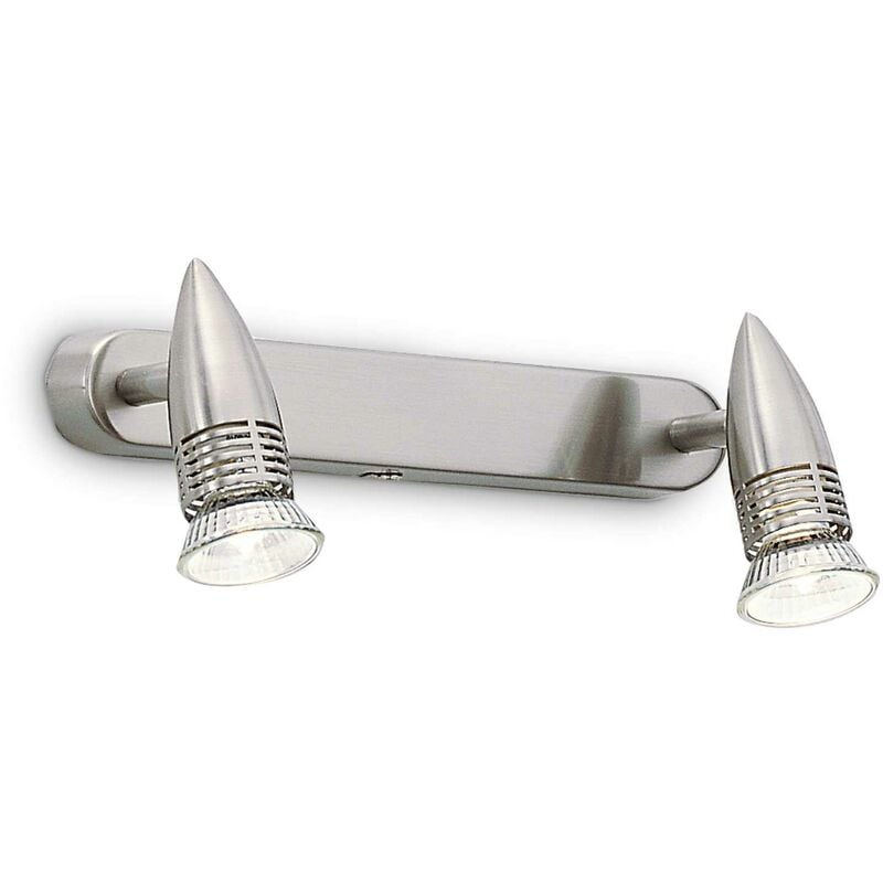 Lampada da parete nickel L 290 x H 110 x P 110 mm Caratteristiche: Lampadina inclusa=Yes Kit fissaggio=No Attacco lampada=GU10 Volt=220-240 V AC Watt=GU10 max 2 x 50W Finitura=nickel Colore rosone=nickel Materiale=Metallo Dimensioni= L 290 x H 110 x P 110 mm