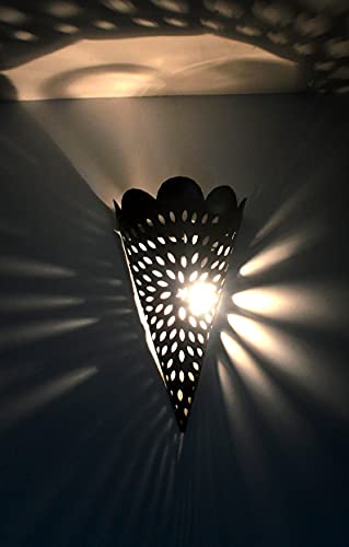 Authentic Handmade Trafitto marocchino paralume da parete in metallo solido foglio in Marrakesh