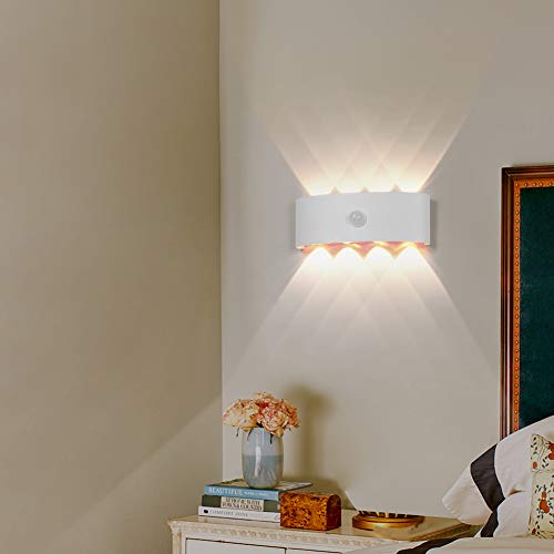 Lampada da Parete a LED con Sensore di Movimento,12W esterni/interni Applique parete Moderna in alluminio Bianco caldo 3000K Luci da Muro impermeabile IP65,Perfetto per Corridoio Scale Soggiorno