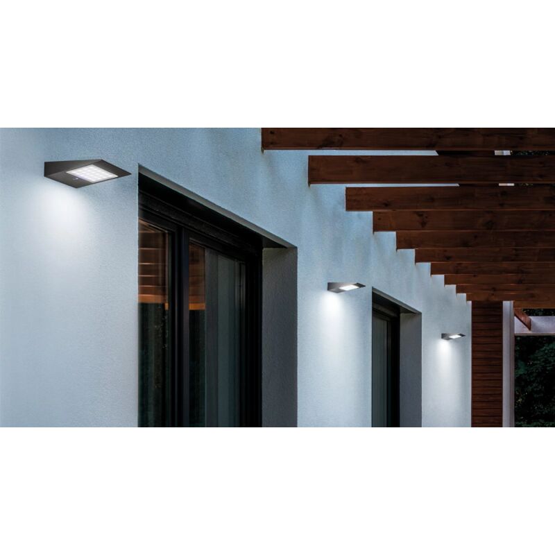 Lanterna a led solare da terra Home di Zafferano da 2,2 watt con una batteria fino a 25 ore di autonomia. Lampada solare da parete con struttura in pressofusione di alluminio verniciato grigio scuro, diffusore in policarbonato. La lampada è dotata di pannello fotovoltaico che carica la batteria, di sensore crepuscolare e di movimento (prodotto privo di collegamento alla rete elettrica perché autoalimentato). Batteria sostituibile. Dove posso utilizzare la mia lampada a led solare fotovoltaica? La lampada fotovoltaica a led da 2,2 watt a batteria è adatta per essere posizionata a parete all'esterno.Grazie al fatto di essere autoalimentata a luce solare è comoda da piazzare ovunque ed illuminare passaggi, marciapiedi, tettoie e spazi esterni ed interni. Essendo senza corrente elettrica si può anche spostare senza alcun problema. Autonomia a luce piena 2,5/3h, a luce più bassa l'autonomia arriva fino a 25h. Il tempo di ricarica della batteria è tra le 6 e le 8 ore con luce solare.