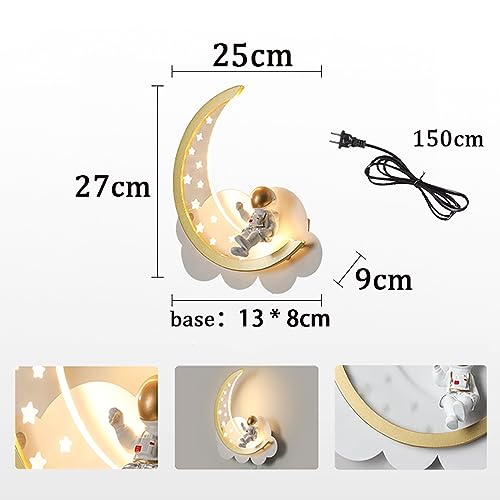 **Lampada da parete per bambini astronauta creativa: Il design unico e delicato delle nuvole e della luna + astronauta crea un effetto di illuminazione incantevole e aggiunge un'atmosfera rustica ed elegante alla stanza dei bambini, è un grande regalo per la tua famiglia, amici, bambini, ragazzi, ragazze.