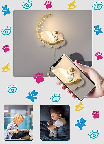 Lampada da Parete per La Stanza dei Bambini LED Luce da comodino Dimmerabile con Interruttore Applique da Parete Nuvola con Spina e Cavo Astronauta Luce a Muro Interni per camera da letto Cameretta