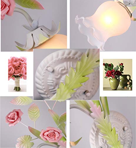 Lampada da Parete 2 Luci,Stile Rustiche Fiori Applique da Parete con Vetro Paralume E27 Lampada da Muro Pastorale Romantica Ceramica Rose Design Luce da muro per Soggiorno Camera da Letto Corridoio,A