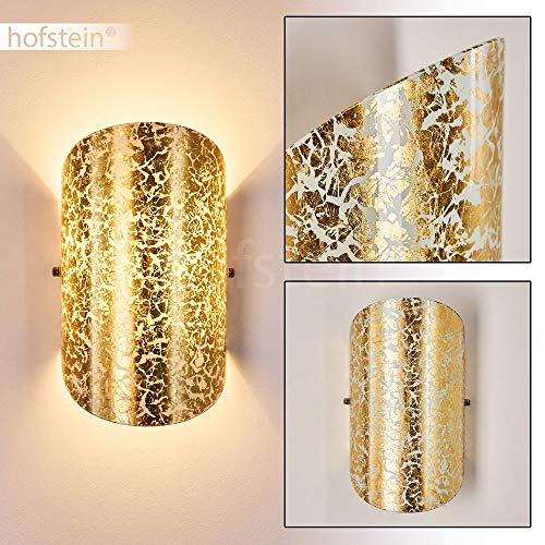 Lampada da parete Teramo in vetro in oro, lampada da parete moderna con gioco di luce sulla parete, 1 x E14, lampada da parete interna con effetto up & down in ottica foglia oro, senza lampadina/e