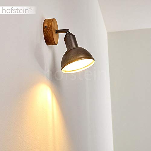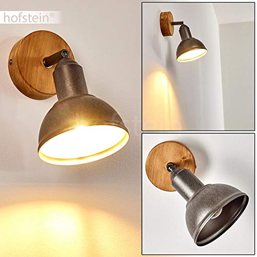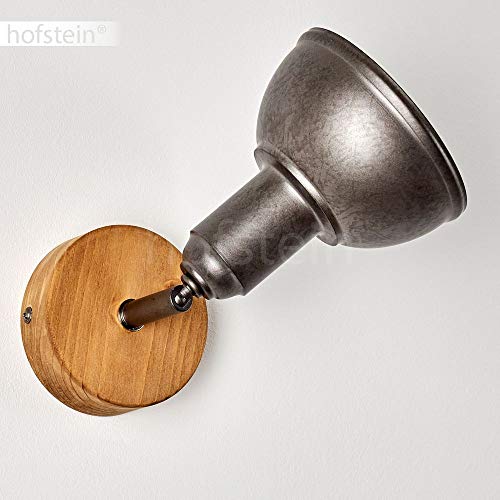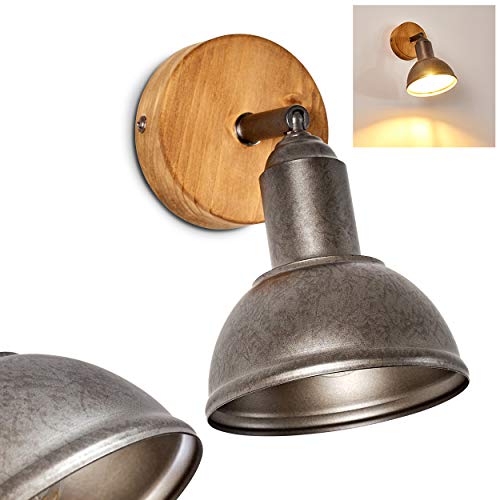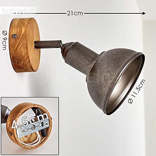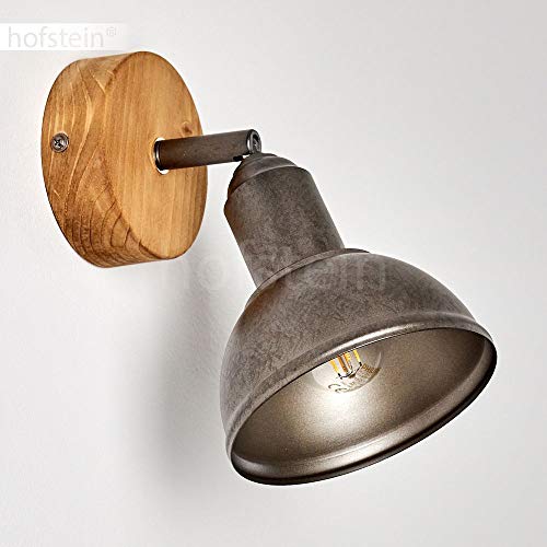 Lampada da parete Tholen, lampada da parete regolabile in metallo/legno in grigio/marrone, 1 luce, 1 attacco E14, spot da parete in design retro/vintage, senza lampadina/e