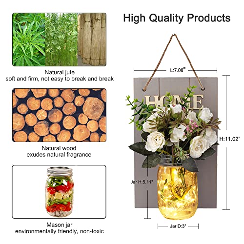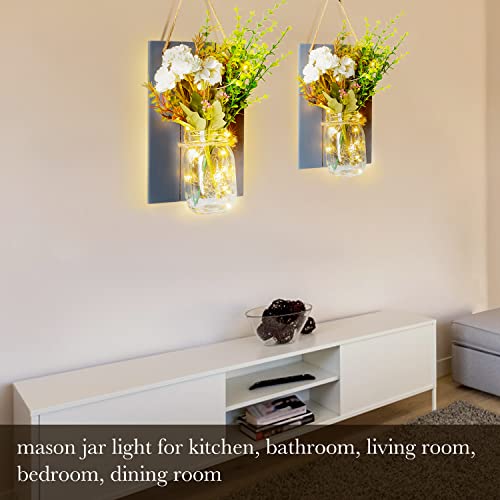 Lampada da parete a LED da parete in vetro Mason Jar Applique Decorazioni per la camera con telecomando Fiore di rosa artificiale casa su tavola di legno per camera da letto agriturismo cucina