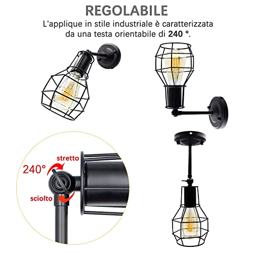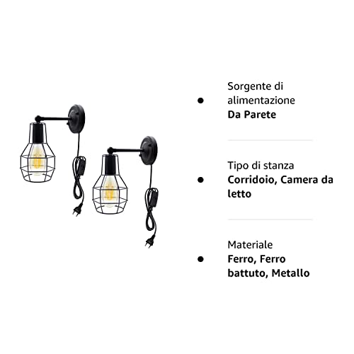 U/D Lampada da Parete Vintage 2 Pezzi Lampada da Parete in Ferro Battuto con Cavo 170cm e Interruttore e Presa Europeo, Stile Retro Decorativa (Lampadina Non Inclusa)