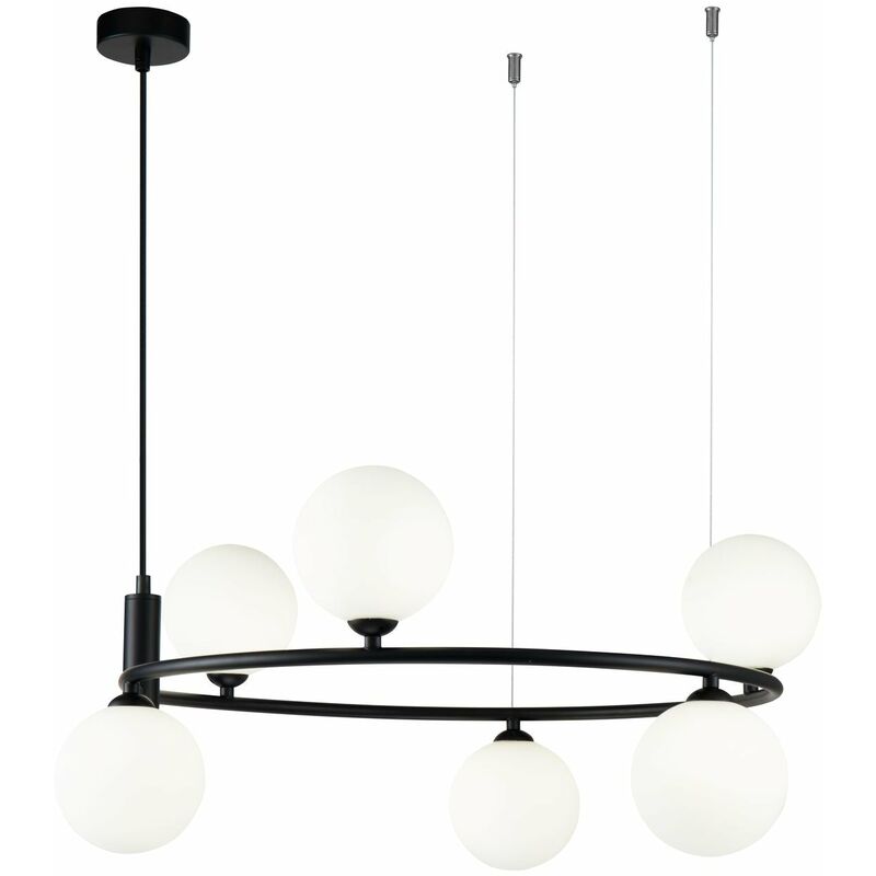 Lampada Lampada pendente Modern in Metallo Ring Nero Struttura in Metallolo. Diffusori in vetro acidato. Caratteristiche Tecniche Tipo prodotto: Lampada pendente Stile: Modern Collezione: Modern Nome della serie: Ring Colore corpo: Nero Materiale corpo: Metallo Altezza corpo (cm): 28 Diametro (cm): 58 Altezza massima (cm): 184 Altezza minima (cm): 34 Protezione IP: IP 20 Classe protezione: Class1 Voltaggio: AC 220-240 Attacco Lampadina: G9 Quantita lampadine: 6 Potenza lampadina (W): 25 Forma Rosone: Rotonda Altezza rosone (cm): 2,5 Diametro rosone (cm): 8 Tipo Montaggio al soffito: Barra Lunghezza catena (cm): 153 Materiale paralume: Vetro Forma paralume: Sfera Colore Paralume: Bianco Diametro Paralume (cm): 12 Raggio Paralume (cm): 12