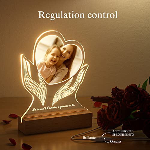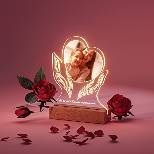 ❤️UN REGALO MOLTO PRATICO -- Personalizzazione + foto personale + luce notturna + ornamento. È un regalo perfetto. Per far durare il prodotto nel tempo, l'acrilico che abbiamo scelto è superiore agli altri pannelli, essendo più trasparente, resistente e facile da pulire. E la base in legno massiccio non sarà mai esteticamente obsoleta.