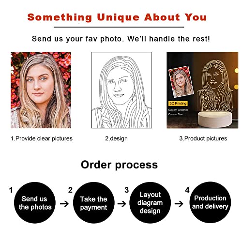 ❤ Per personalizzare una lampada fotografica 3d: 1. Clicca su "Personalizza ora". 2. caricare una foto della persona che ti piace e gli auguri che vuoi incidere. Puoi personalizzare la tua foto preferita o parole di incoraggiamento per i tuoi figli, la tua ragazza e i tuoi familiari, animale domestico. Assicurati che la foto sia di buona qualità e che i soggetti in primo piano siano chiaramente visibili.