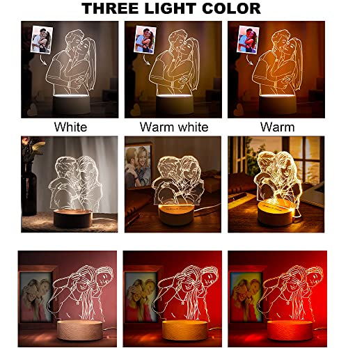Lampada Personalizzata con Foto, LED Personalizzabile 3D Incisione Testo con Base e USB Ricaricabile Acrilico Lampade Minimalista Linea di Disegno San Valentino Natale Compleanno Migliori Regali