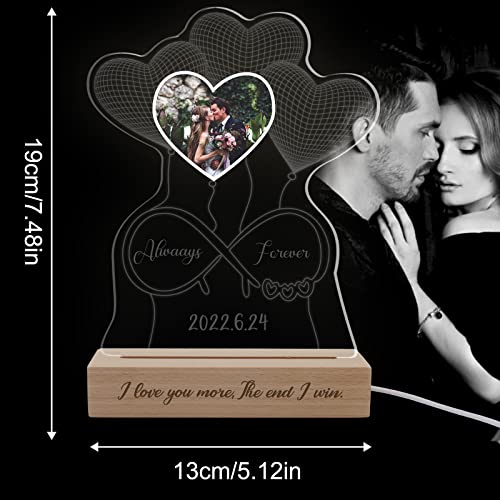 Regalo che scalda il cuore Luce di testo fotografica personalizzata, può personalizzare l'immagine, il testo, il nome, la data. Anche la base in legno può essere personalizzata. È la scelta migliore per San Valentino, anniversario, compleanno, matrimonio per la famiglia, gli amici, l'amante, il marito, la moglie.