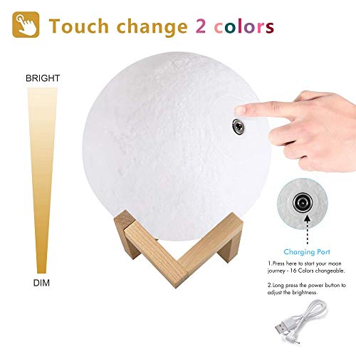 ❤REMOTE & TOUCH CONTROL:16 colori led luna personalizzato con supporto, è possibile utilizzare il telecomando per cambiare i toni di colore e regolare la luminosità, timing.FLASH, STROBE, STROBE, FADE, SMOOTH.Touch interruttore e pat anche possibile cambiare il colore. L'interruttore a sfioramento breve può cambiare il colore. L'interruttore touch lungo può regolare la luminosità e chiudere.