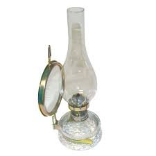 Lampada ad olio, lampada a petrolio in stile antico, riempibile, con base in vetro trasparente,con decorazioni dorate, stoppino colorato, con specchio con supporto in ottone soffiato, altezza circa 32,4 cm