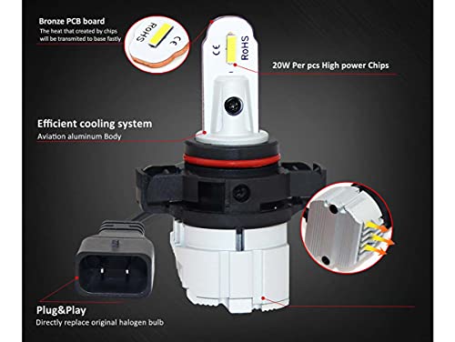 Lampada Led 5202 H16 PG20/3 PS24W PS19W, 12V 20W Fendinebbia IP65 Bianco 6000K 2000LM 360 Gradi Canbus Slim (5202 H16 PS24W)
