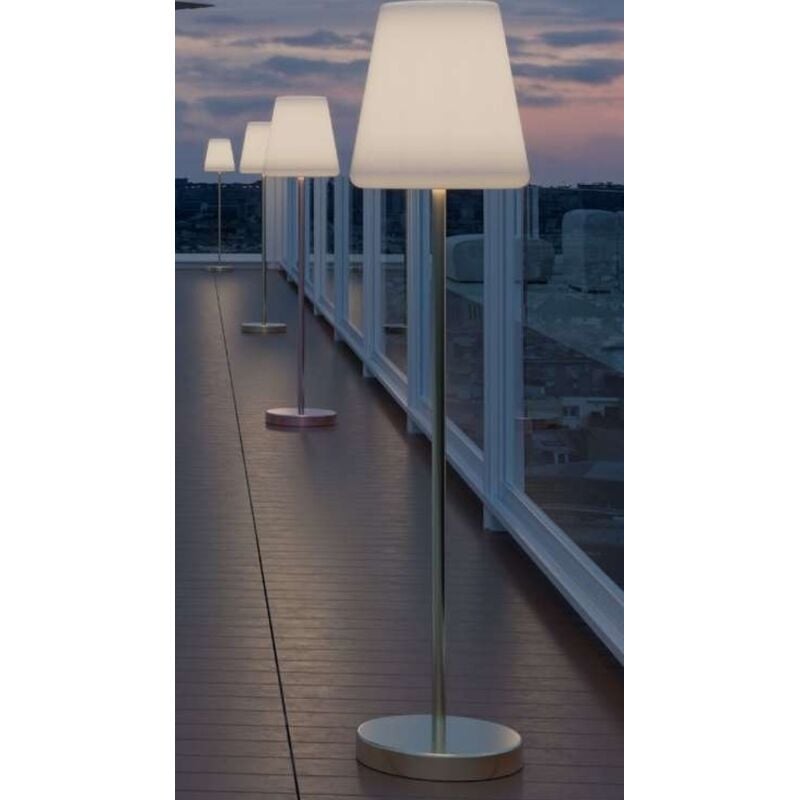 Lampada led, in ABS e polibutitilene.Batteria 5200 mAh, potenza 4,5 W, 600 lumenLuce fredda + luce calda + RGB.Con telecomando, sensore crepuscolaree cavo da 4 mDimensioni cm 28x119h colore grigio