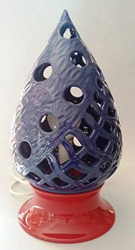 Lampada a pigna h 36 x L 19 cm colore blu e rosso in stile moderno realizzata rigorosamente a mano.