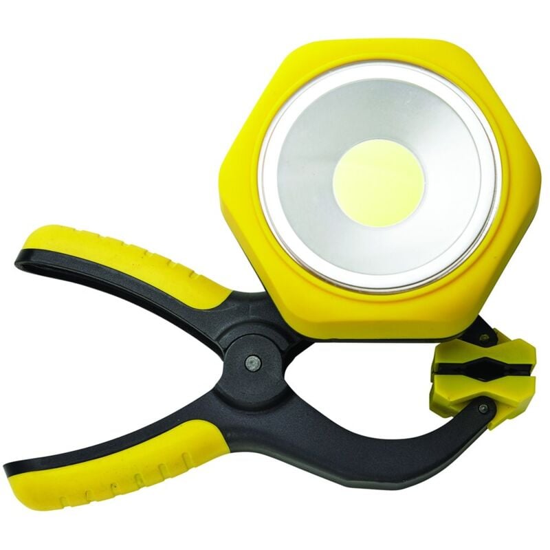 Luce Led 250 LumenPinza per un rapido fissaggio con testa orientabileLampada sganciabile per essere usata senza pinza2 potenti calamite sul fondo Funziona con 3 batterie (AA) non incluse